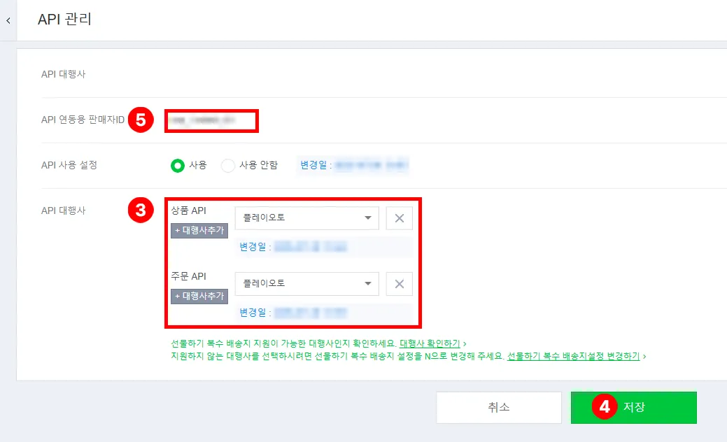 API 대행사의 상품 API와 주문 API를 모두 플레이오토로 지정합니다.
