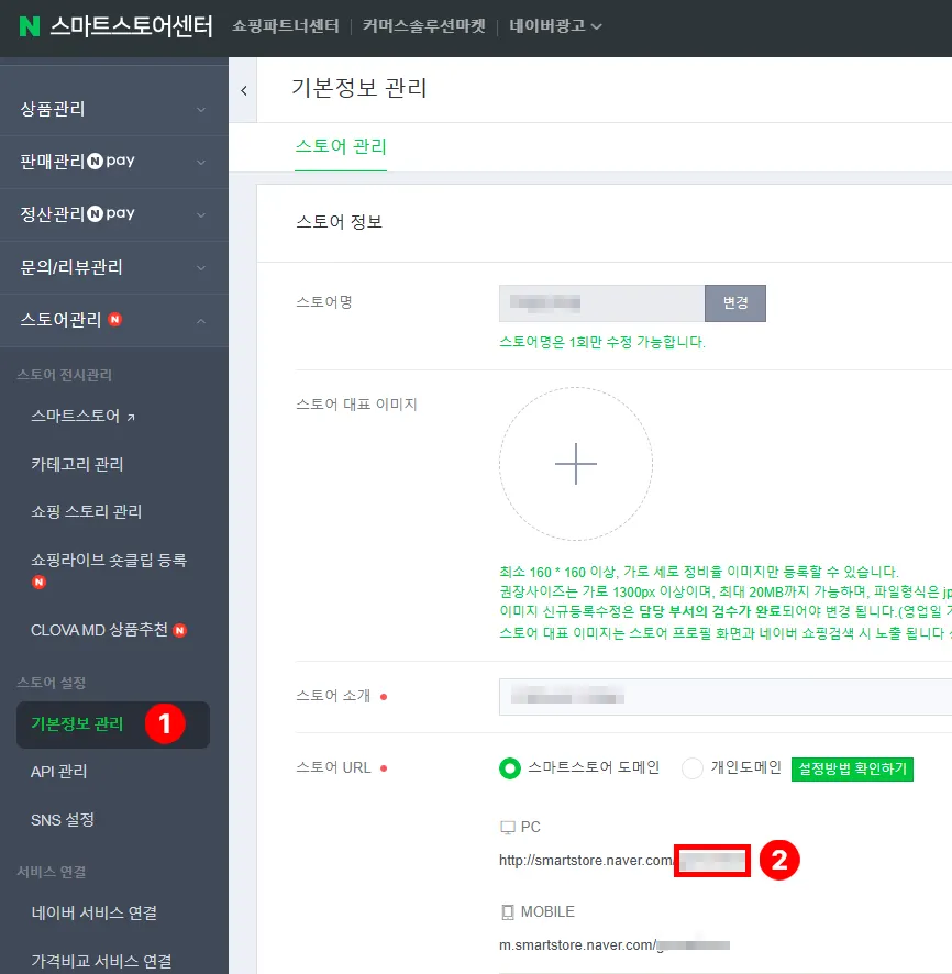 접속해둔 스마트스토어 판매자센터에서 [스토어관리] → 스토어 설정 [기본정보 관리]로 이동해 주세요.