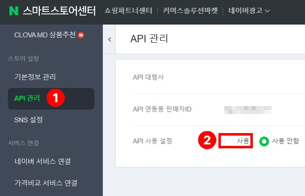 API 사용 설정을 ‘사용’으로 선택합니다.