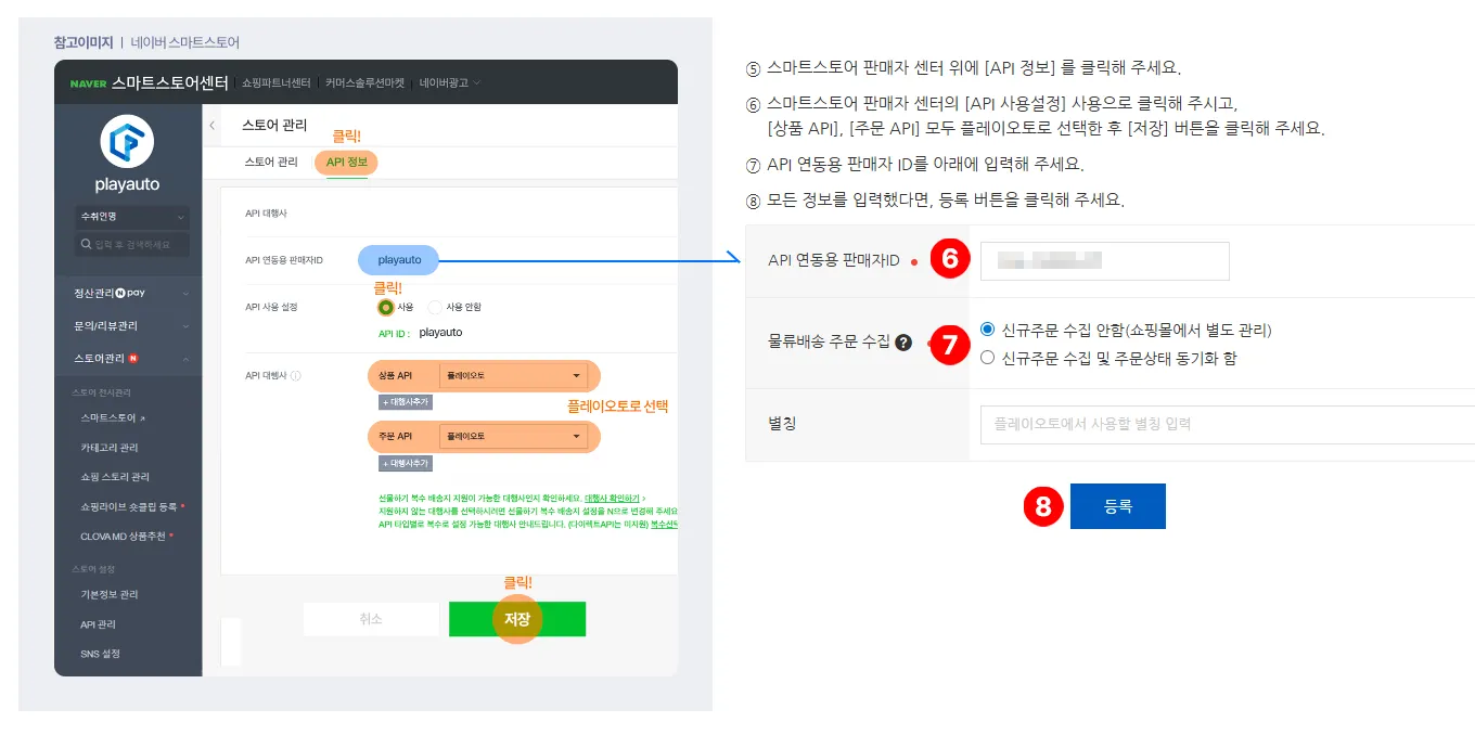 모든 정보를 입력했다면 ‘등록’ 버튼을 클릭해 쇼핑몰 연동을 완료해 주세요.