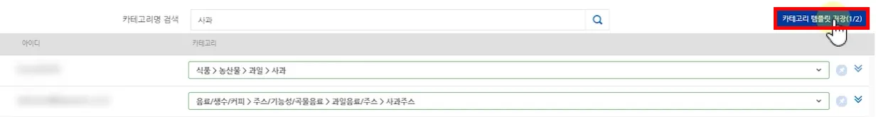 쇼핑몰마다 카테고리 지정이 끝났다면, 우측 상단의 ‘카테고리 템플릿 저장’ 버튼을 클릭합니다.