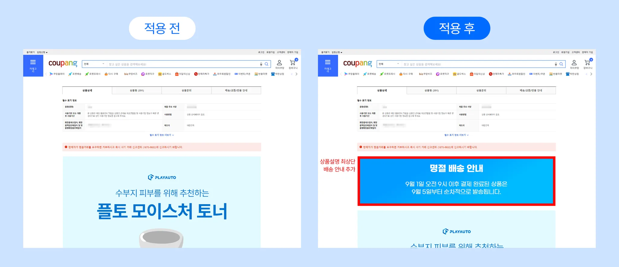 아래와 같이 배송 지연 안내나 브랜드 공지사항이 있을 때 활용하실 수 있습니다.