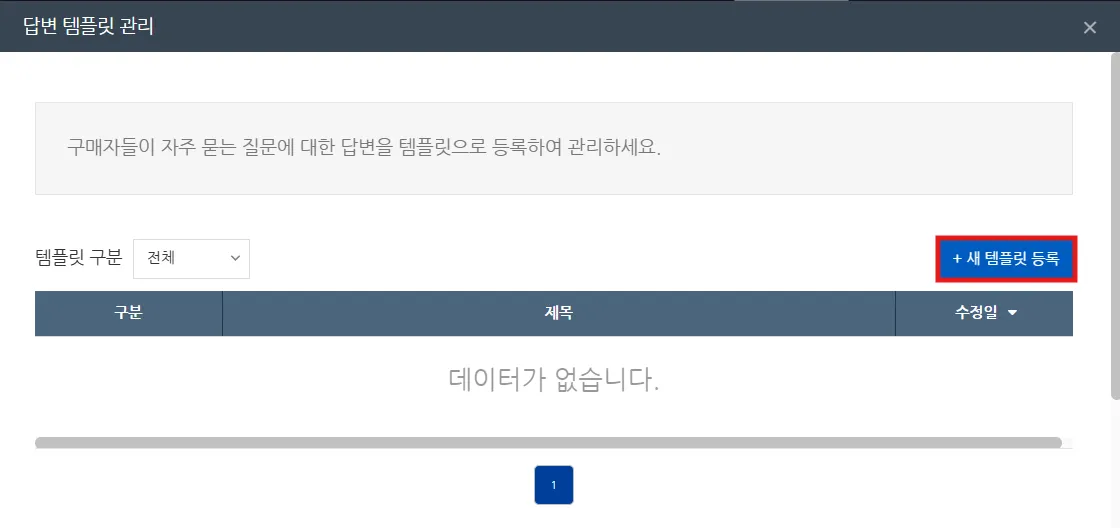 ‘새 템플릿 등록’ 버튼을 클릭해 주세요.