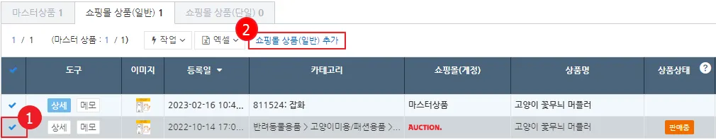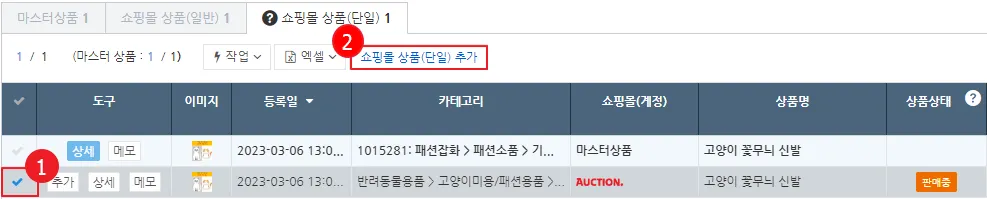 Step 2. [쇼핑몰 상품(단일) 추가] 버튼을 클릭해요.