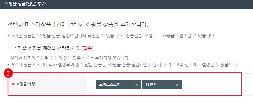 Step 3. 상품 추가 화면에서 추가할 쇼핑몰(계정)을 선택해요.