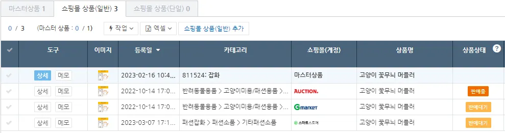 이미 판매중인 상품인데, 판매 채널이 늘어나면서 새로 추가된 쇼핑몰에도 상품을 판매할 수 있어요.