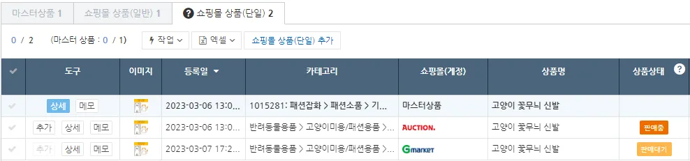 2. [쇼핑몰 상품(단일) 추가]로 쇼핑몰을 추가할 수 있어요.