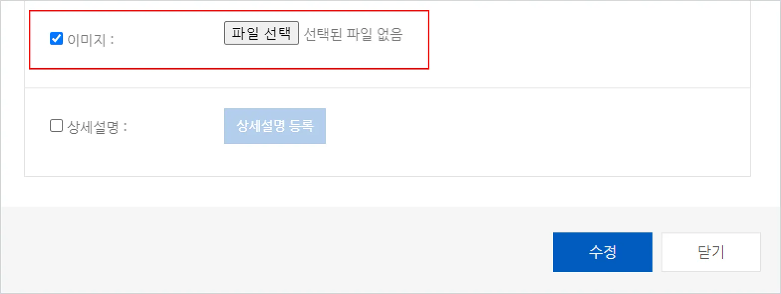 ⑤ 이미지 항목에 체크하고 페이지 우측 하단의 [수정] 버튼을 눌러 적용해요.