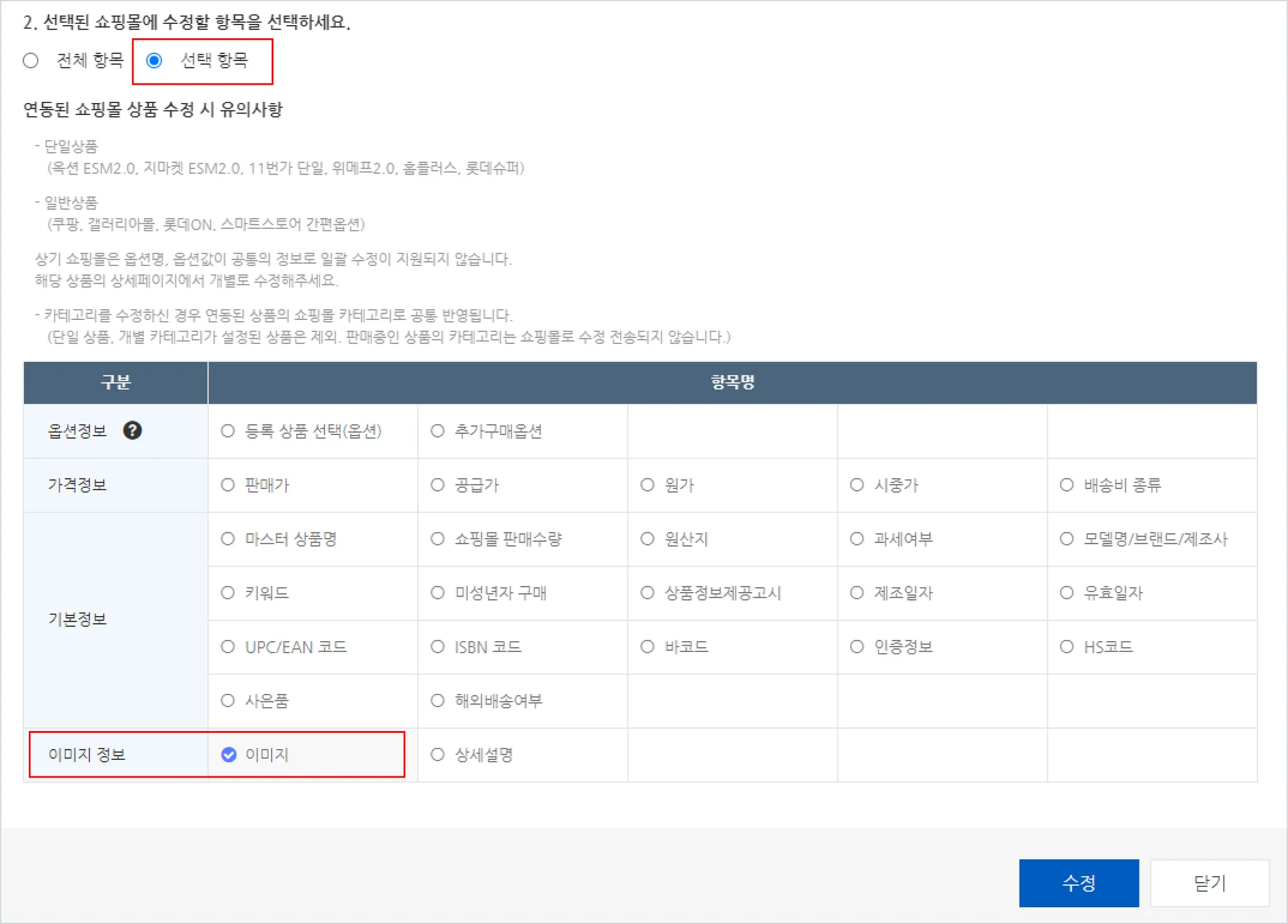 ④ 연동된 쇼핑몰 상품 정보도 공통 수정에 체크